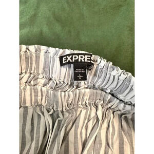 Express Women large Crop Top Striped GrayWhite Triangle Smocked Spaghetti Strap
