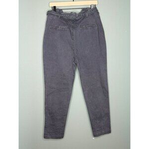 Express Women's 10 R Paper Bag Twill Taper Leg Ultra High Rise Gray Belted Pants