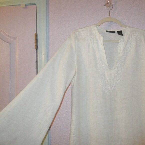 Express Women's 100% Linen Top Size S Embroidered Flared Sleeve Oversized Tunic