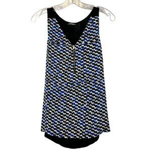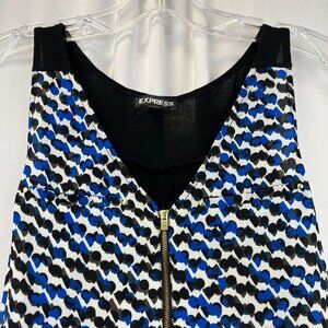 Express Womens 1/4 Zip Sleeve Top Blue/Multi Print Size Small Hi Low
