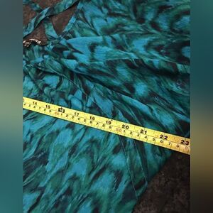 Express Women's 3/4 Sleeve Blue Swirled Pattern Semi Sheer Top Shirt - Size S