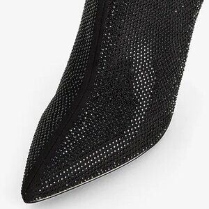 Express Womens Ankle Booties Size 7 Pointed Rhinestone Thin Heeled Sparkly Black