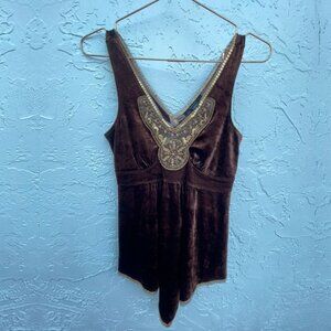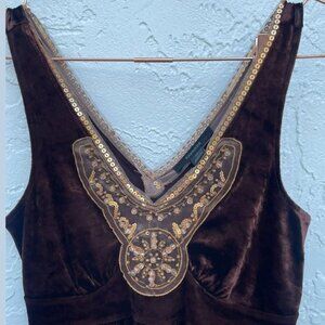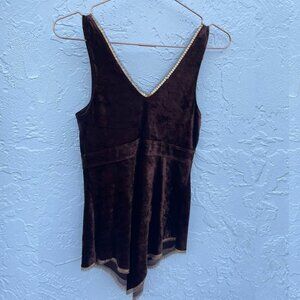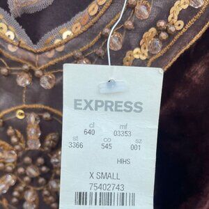 Express Womens Asymmetrical Gold Sequin Sleeveless Top Velvet Brown Sz XS