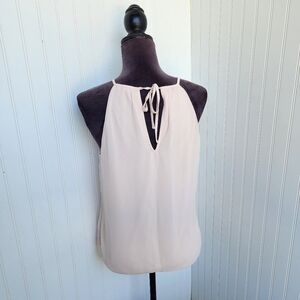 Express Womens Beaded Collar Tank Blush Pink Elastic Hem Back Neck Keyhole Sz M