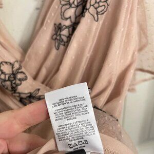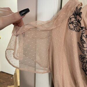 Express Womens Beige Floral Embroidered Mesh Layered Cold Shoulder Blouse Large. Measurements Underarm to underarm: 21" Length: 26" Offers always welcome! Measurements are approximations taken while hanging