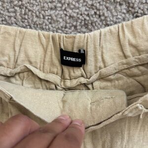 Chic pleated linen shorts with a tailored fit. Ideal for casual or dressy occasions. Has elastic waistband in back for added comfort.