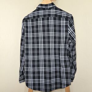 This Express women's flannel shirt is a stylish addition to any wardrobe. The black and white plaid pattern adds a touch of color to any outfit, while the collared neckline and button-up style give it a classic look. With long sleeves and a petite size, this flannel is perfect for any occasion.