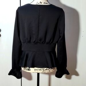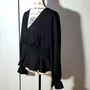Express- Womens Black Blouse Ruffle Sleeve ends Vneck neutral whimsigoth Sz.L