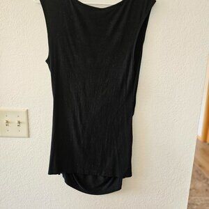 Express Women’s Black Cowl Neck Top Size M Shirred Waist Draped Front Sleeveless