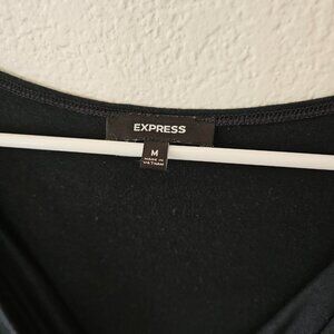 Express top, black cowl neck top, shirred waist top, draped front top, women’s medium top, rayon spandex top, casual chic top, elegant women’s top, machine washable top, fitted top, comfortable top, versatile black top, Express clothing, women’s blouse, chic black top
