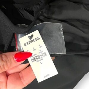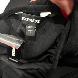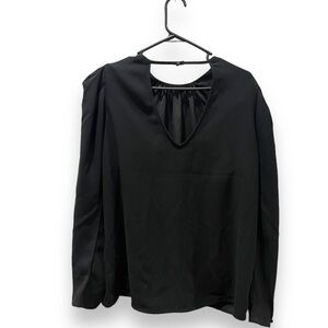 Express Womens Black Cutout Back Blouse Top Pleated Puff Long Sleeve Large NWT