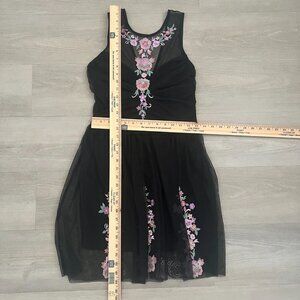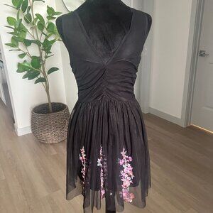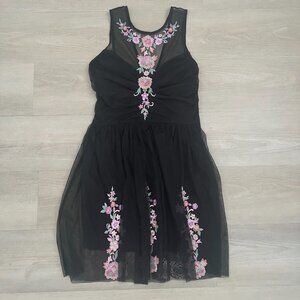 Express Womens Black Floral Fit Flare Dress Whimsigoth Balletcore Fairy Sz 4