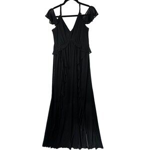 Express Womens Black Maxi Dress Size M Babydoll Y2K Mesh Whimsigoth Empire Waist