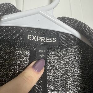Express Women’s Black Metallic Open Front Blazer Size S Longline Career Jacket