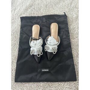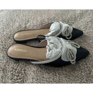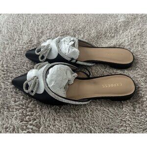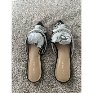 Express Women’s Black Mules Flat with Bow Detail Size 6 New