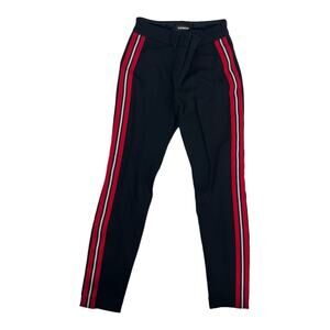 Express Women’s Black Red Racing Stripe Skinny Mid Rise Stretch Pants Size 2R