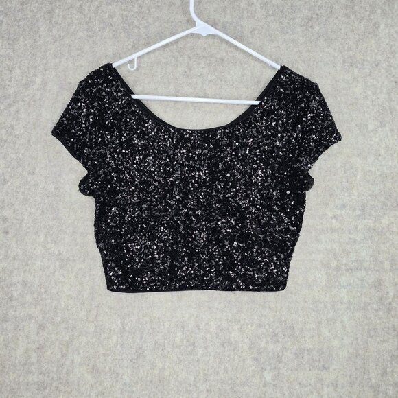 Express Womens Black Sequin Crop Top Short Sleeve Polyester Size S Party Wear