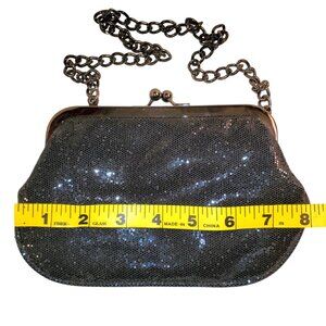 Express Women's Black Sequin Shoulder Clutch Purse with Kiss lock Closure.