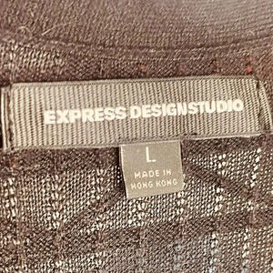 Tags: fall, winter, spring, summer, all seasons, Express, women's, black, short sleeve, knit, button, ruffle, top, office, work, career, corporate, dinner, date, evening, night out, casual, business casual, colorful, feminine, girly.