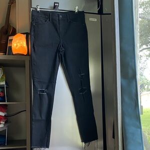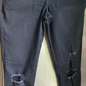 Express Women's Black Skinny Jeans, ripped with raw hem. Size: 6L , 6 Long