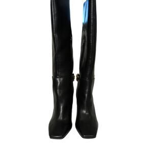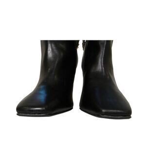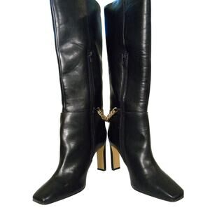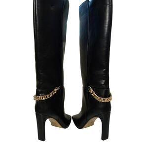 Express Women's Black Tall Boot Heel Gold Chain Size 8 Sexy Vegan Leather Hot