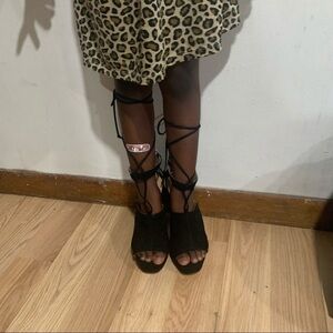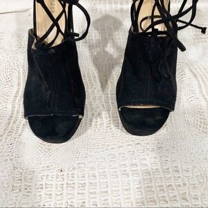 A gently used charming pair of black peep toe heels. Heel height 5.”