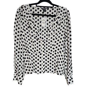 Express Womens Black White L Polka Dot Blouse Preppy Indie Patterncore Peplumcor