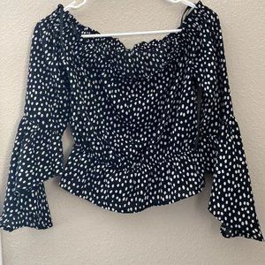 Express Women's Black White Polka Dot Off The Shoulder Cropped Chiffon Top XS
