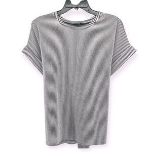 Express Women’s Black White Striped Textured Knit Dolman Belted Top Medium
