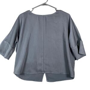 Express Womens Blouse Black Blouse 1/2 Sleeve Tunic Boat Neck Sheer Stretch XS