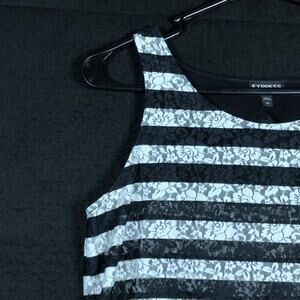 Express Womens Blouse Black White Lace Striped Sheer Tank Scoop Neck Stretch S