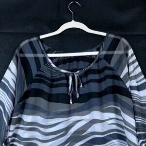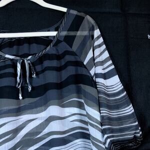 Express Womens Blouse Black White Zebra Print Sheer 3/4 Sleeve Small