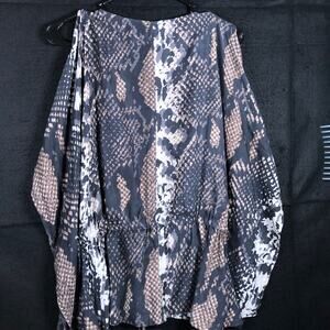 Express Womens Blouse Brown Black Snake Print V Neck Cold Shoulder Medium