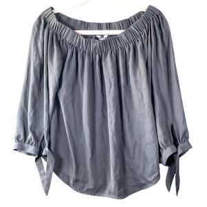 Express Womens Blouse Gray Long Sleeve Off The Shoulder Boat Neck Cinched S
