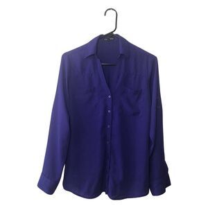 Pre-owned. Express Women’s Blouse Sheer Small Long Sleeve Roll Up V Neck.