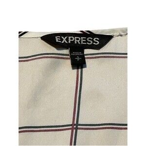 Express Women’s Blouse Size S White Black Windowpane Plaid V-Neck