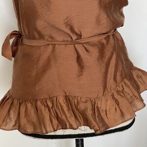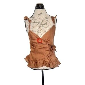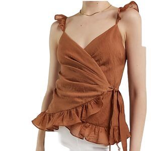 Express Womens Satin Ruffle Wrap Cami Blouse Size Small V Neckline Sleeveless Boho Cottagecore Fairycore Cottage Whimsical