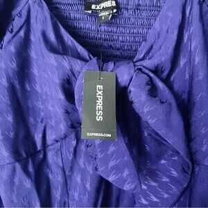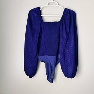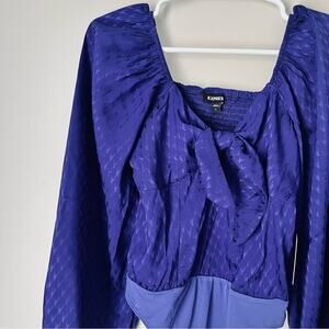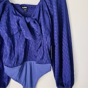 Express Women’s Blue Long Sleeve Bow Front Bodysuit