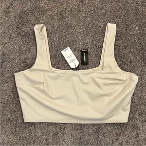 Express Women’s Body Contour Faux Leather Square Neck Cropped Tank – Sandshell – Size XL – NWT – MSRP $48
