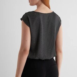 Express Women's Gramercy Satin Polka Dot Bodysuit – Size XS – Black/White – Cowl Neck – NWT – MSRP $64