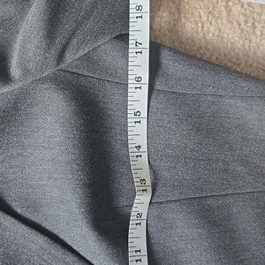 Express women's charcoal blazer. NWT, size 6. Tried on but never worn. Excellent, new condition. No flaws. Some stretch. Has shoulder pads. Still has stitches on the back vents that need to be taken out to be worn. Polyester, viscose, elastane blend. Dry clean only.