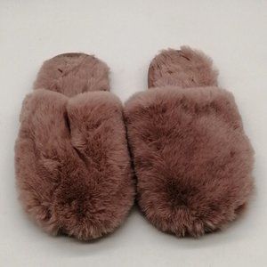 Express Womens Clog Slide Slippers Mauve Faux Fur Flat Heel Round Toe Sz M 7-8