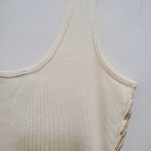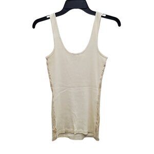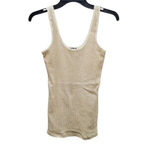 Express Women's Cream Champagne Gold Sequin Front Sleeveless Scoop Neck Tank S