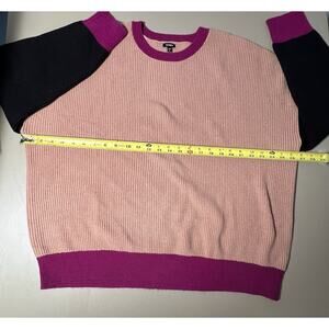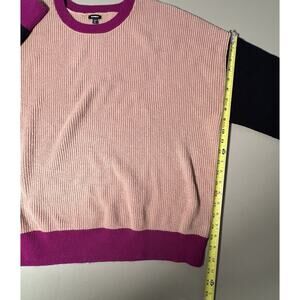 Express Women's Crewneck Long Sleeved Relaxed Fit Sweater XL Tan/Black/Fuschia
