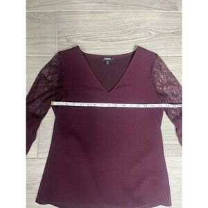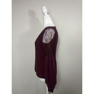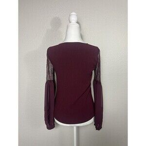 Express Women’s Deep Maroon Red Long Sleeve Lace Blouse Size XXS Petites A4