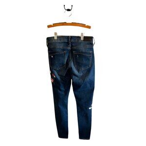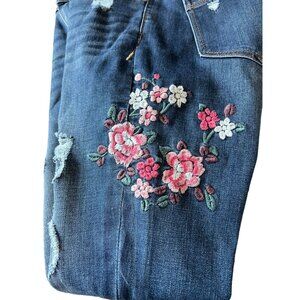 Express Womens Distressed Floral Embroidered Skinny Legging Jeans Size 0 Cotton