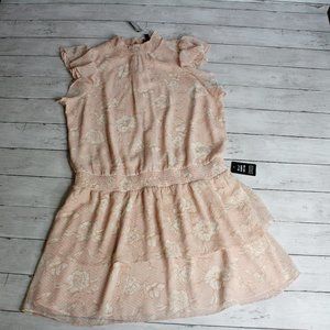 Express Women's Drop Waist Sheer Dress Size L Flutter Sleeve Pink Cream