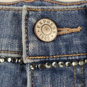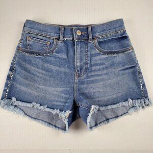 Express Women's Embellished Gemstone High Rise Frayed Hem Shortie Size 00
