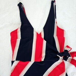Express Women's Faux Mini Wrap Dress Size Small Navy Blue Red White Sleeveless
