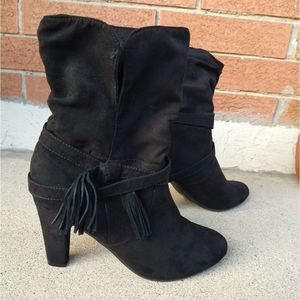 Express Women's Faux Suede Fringe Heel Booties Size 9